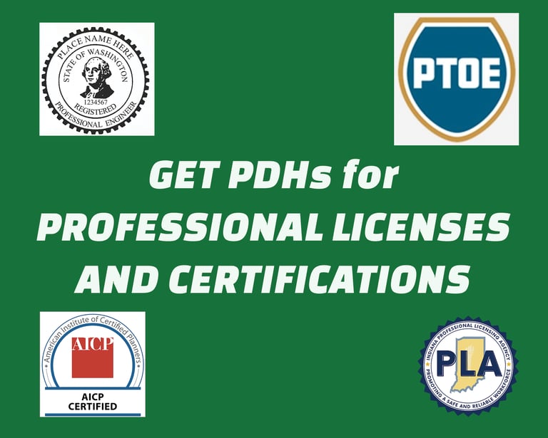 Earn Certification Maintenance (CM) credits and Professional Development Hours (PDH) for AICP, PE, PTOE, PLA, and more!